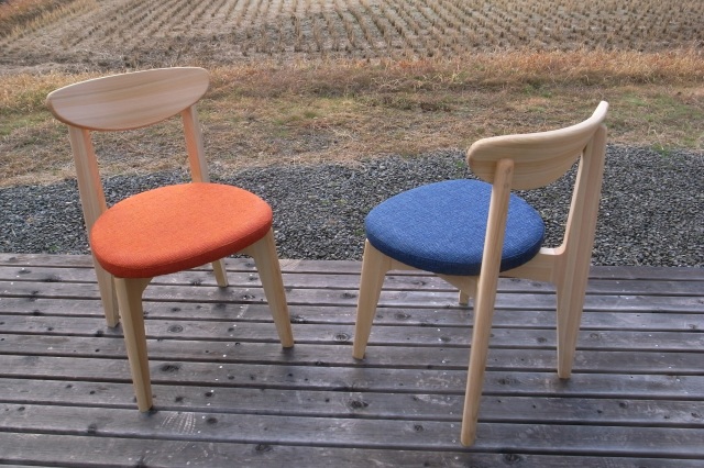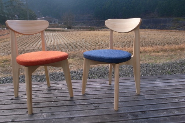 日本最後の清流と言われる高知県の四万十川。工場はその四万十川沿いにあり、EINEで使われている木材はその流域で育ったヒノキが使われています。厳選された四万十ヒノキは綺麗なピンク色でツヤがあり、香りが強いのが特徴です。清流を感じさせる清らかなその香りは人の心をリラックスさせる効果があります。商品名のEINE(エイネ)とは土佐弁で「いいね」という意味です。安定感のある座り心地。座面の高さは41cmとやや低めですのでしっかりと床に足が着きます。可愛らしい姿ですが、公共施設での使用にも耐える強度試験に合格している以外にタフな椅子です。 座面は2種類。無垢材と布張りをご用意しています。無垢材の座面には縁起の良いひょうたん型ちぎりをあしらっています。