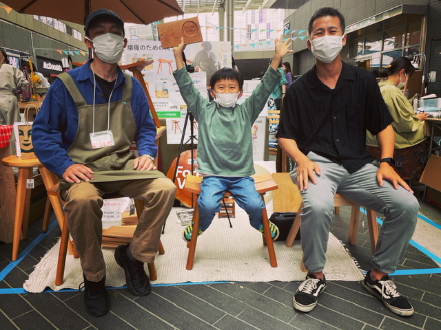 今回は「天使の椅子」の他、お皿やカッティングボードなどの木製品も取り揃えていますので、是非ご来場ください。
